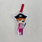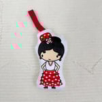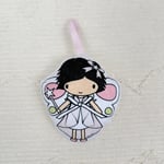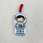 Sonajero muy suave y blandito en forma de muñeco, confeccionado en tela afelpada Minky y decorado con impresiones de personajes dibujados por mí.